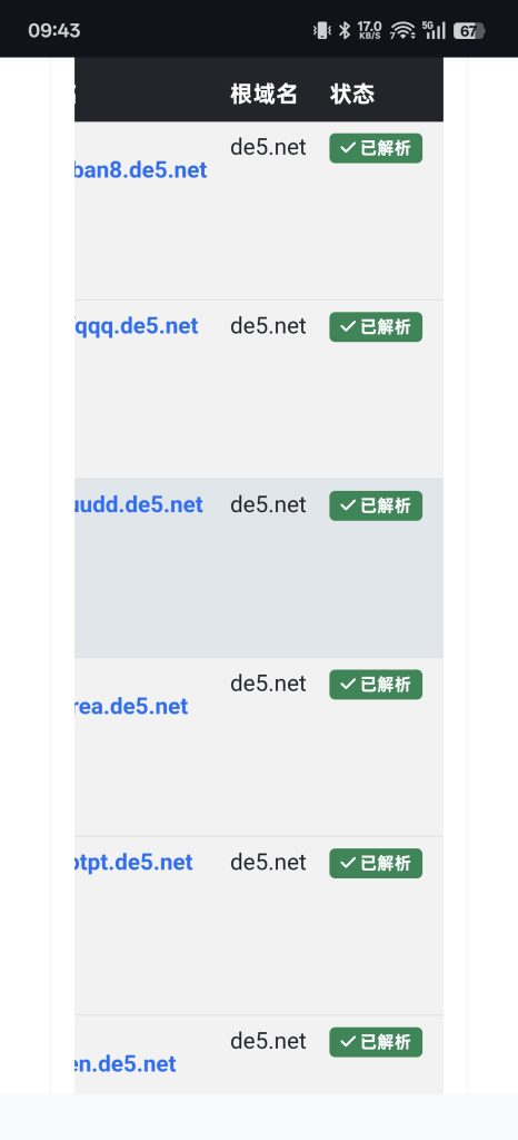 - 在提供的后缀列表中,请务必选择支持 Cloudflare 托管的后缀de5.net。